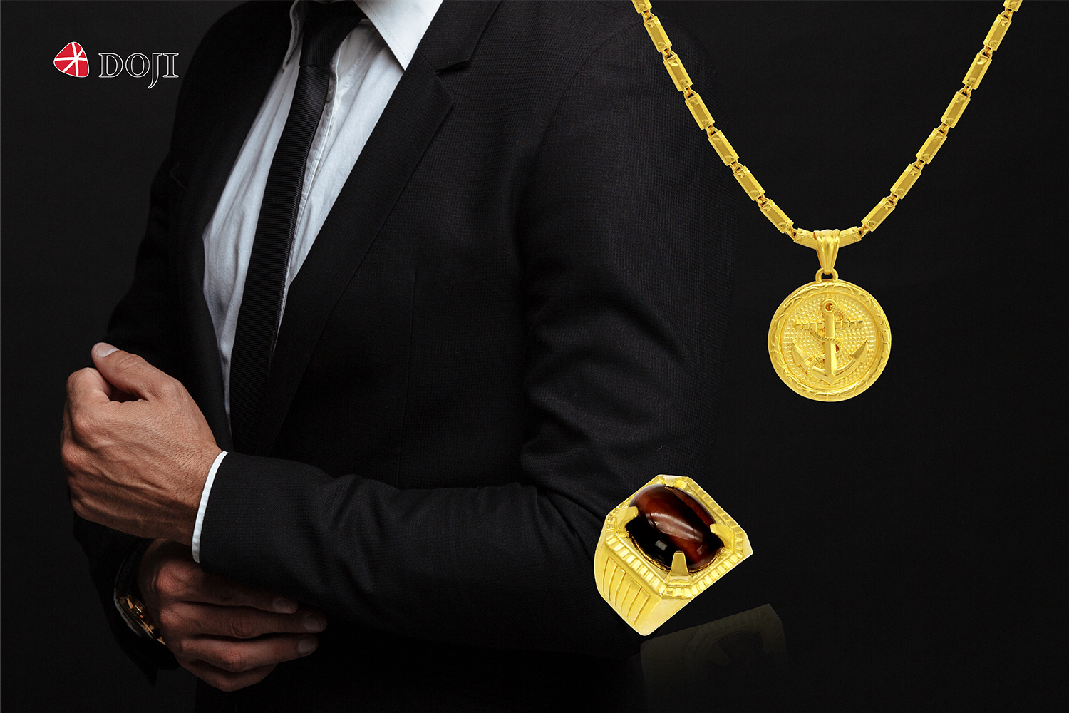 Với chất liệu vàng 24K sang quý, DOJI đã tạo nên những mẫu trang sức khỏe khoắn cho nam doanh nhân đầy tính biểu tượng.