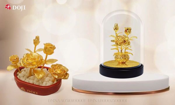 Hoa hồng vốn là biểu tượng của tình yêu và lòng kính trọng, khi được ứng dụng công nghệ Nano phủ vàng 24K lại càng trở nên lộng lẫy và cao quý. Những tượng vàng lấy cảm hứng từ hoa hồng như Hồng Vàng Kiêu Sa và Hồng Vàng Như Ý được xem là lựa chọn hoàn hảo để bày tỏ lòng biết ơn đến thầy cô. Từng cánh hoa được chế tác tỉ mỉ, uốn lượn mềm mại như khắc họa hình ảnh người thầy, người cô tận tâm, lặng lẽ cống hiến trong hành trình gieo chữ. Hồng Vàng Kiêu Sa mang thông điệp tôn vinh, chúc phúc và tri ân – tượng trưng cho sự thành đạt, vinh hoa và tri thức tỏa sáng. Trong khi đó, Hồng Vàng Như Ý lại toát lên nét nhẹ nhàng, tinh khôi, là lời cầu chúc bình an, viên mãn và may mắn bền lâu. Hai mẫu tượng không chỉ là vật phẩm trang trí tinh tế mà còn là biểu tượng của lòng tri ân và sự trân trọng.