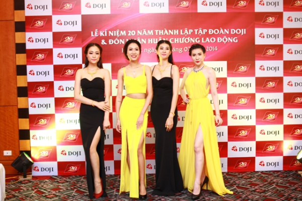 Các người đẹp hội ngộ tại Đêm trình diễn Thời trang Trang sức “Cùng DOJI tỏa sáng”: Hoa hậu Á hậu Việt Nam 2012 - Đỗ Hoàng Anh, Dương Tú Anh; Hoa hậu Việt Nam 2010 – Đặng Ngọc Hân; Vũ Ngọc Anh – Top 5 Hoa hậu Việt Nam 2012; Dương Thùy Linh - Hoa hậu thân thiện, Top 5 hoa hậu hoàn vũ Việt Nam 2008.
