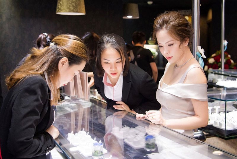 Cô chia sẻ: DOJI là thương hiệu kim cương yêu thích bởi hội tụ kho kim cương viên khổng lồ, luôn có mức giá tốt hơn so với nhiều đơn vị khác trên thị trường