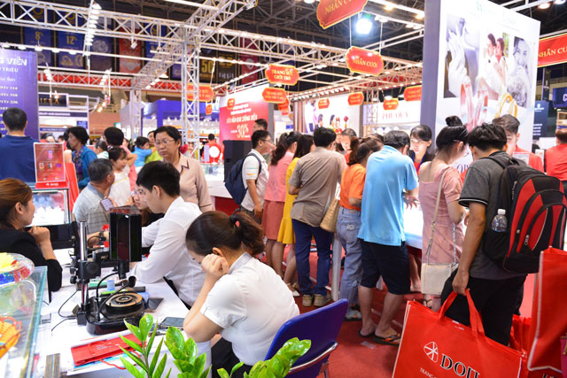 Gian hàng của DOJI tại Hội chợ VIJF nhận sự quan tâm của đông đảo khách hàng ở mọi lứa tuổi, sở hữu nhu cầu và phong cách khác nhau