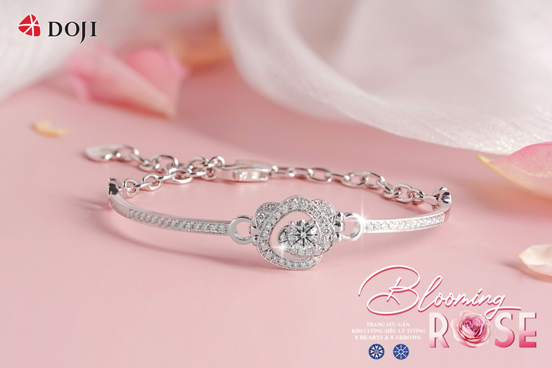 Lựa chọn viên kim cương 8 Hearts and 8 Arrows siêu quý hiếm là chất liệu chủ đạo cho BST “Blooming Rose” đã cho thấy sự đầu tư của DOJI để mang đến món quà tuyệt vời nhất dành tặng những người phụ nữ yêu thương.