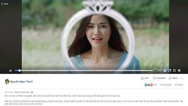Facebooker Hoang Nguyen bình luận: “Lúc rút nhẫn, em chụp tay hét ‘Anh tính làm gì?’ Đời này chắc mỗi mình anh và em như vậy. Xem clip thấy người ta lắp bắp mình cũng ham làm lại ghê”.