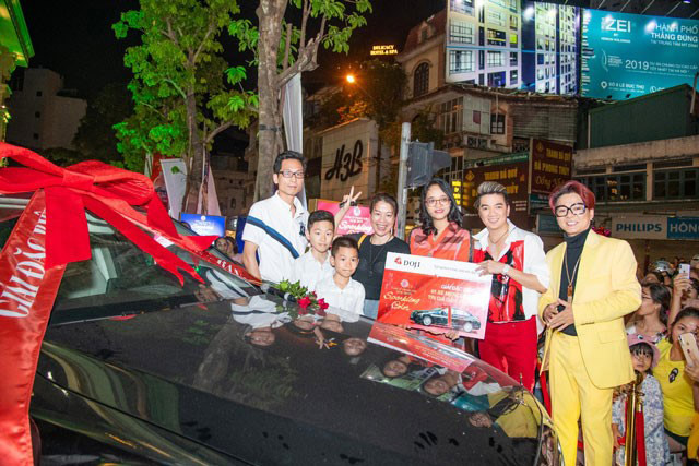 Bà Lê Thị Hiền – Đại diện Tập đoàn Vàng bạc đá quý DOJI và ca sỹ Đàm Vĩnh Hưng, ca sỹ Vũ Hà đã trao giải đặc biệt trị giá gần 2 tỷ đồng cho vị khách may mắn nhất