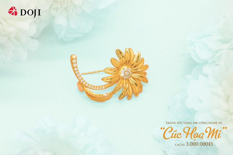 Dịp này, nhằm mang tới cho khách hàng nhiều trải nghiệm và sự lựa chọn, DOJI còn ra mắt Bộ sưu tập Trang sức Vàng ta công nghệ 3D “Cúc họa mi”, biểu tượng cho sự trong sáng, lãng mạn, tinh khôi và dung dị.