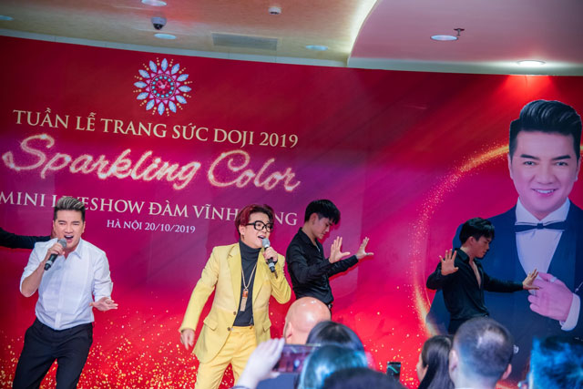 Trước đó, DOJI gây ấn tượng với một minishow ca nhạc sôi động của ca sĩ Đàm Vĩnh Hưng. “Ông hoàng nhạc Việt” làm nóng bừng sân khấu và không ngần ngại giao lưu thân thiết với người hâm mộ Thủ đô. Minishow lần này của Mr Đàm có sự tham gia của người bạn thân thiết – ca sĩ Vũ Hà.