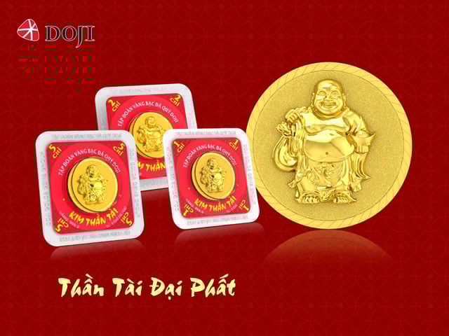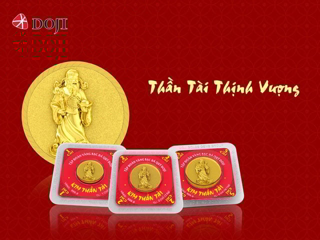 Ngoài ra, cùng thông điệp “Kim Tuất cầu may – Thần Tài đại phất”, DOJI còn tung ra dòng sản phẩm đồng vàng 999.9 Kim Thần Tài, nổi bật hình ảnh ông Thần Tài – vị thần mang đạt cát đại lợi trong tín ngưỡng Đông Phương