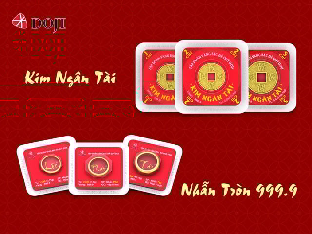 Nắm bắt xu hướng thị trường, Tập đoàn DOJI còn giới thiệu dòng sản phẩm hộp lì xì Kim Tài Lộc, được mạ vàng 999.9 và có mức giá chỉ 500.000 đồng, bao gồm: Khuyển Vàng Cầu May, Âu Vàng Tài Phát, Thần Tài Thịnh Vượng
