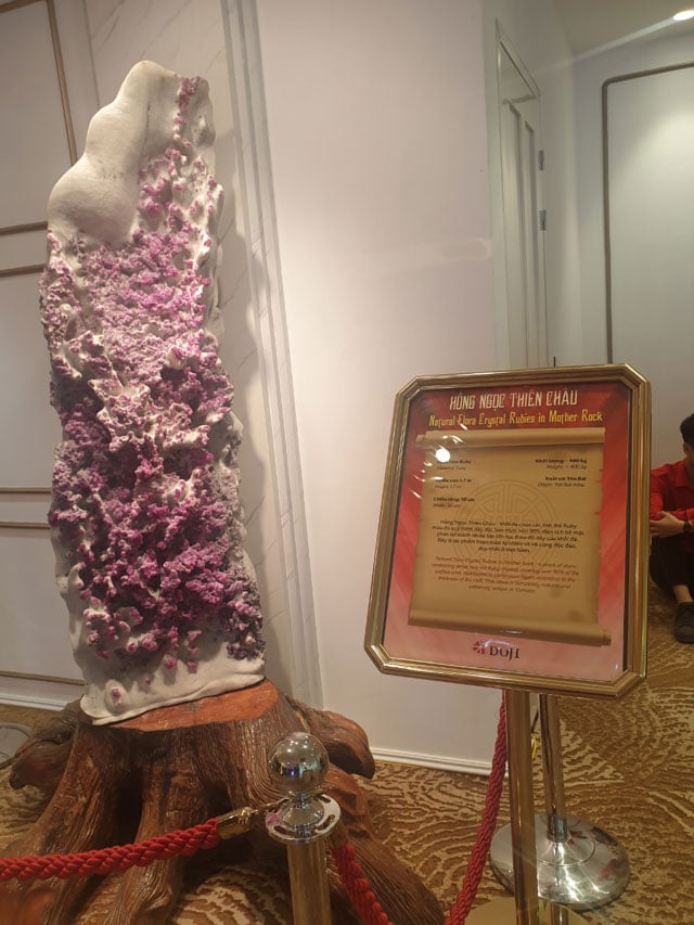 Bảo Hồng Ngọc đạt kỷ lục khối Ruby Sao nặng nhất Việt Nam, với trọng lượng 18,8 kg. Bảo vật này độc đáo với sắc đỏ huyết bồ câu hiếm thấy trên thế giới, chất lượng hoàn hảo với 6 cánh sao sắc nét bao trùm khối ngọc