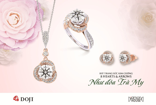 Được biết đến là thương hiệu trang sức sở hữu nhiều thiết kế ấn tượng, nổi bật cùng chất liệu đa dạng và đẳng cấp, DOJI luôn làm nức lòng mọi tín đồ thời trang mỗi khi tung ra bộ sưu tập mới. Không nằm ngoại lệ, dịp 8-3 này, các thiết kế lấy cảm hứng từ cánh trà my kiêu sa trong bộ sưu tập trang sức gắn kim cương 8 Hearts & 8 Arrows “Như đóa Trà My” được ví như làn gió mới trong thế giới trang sức dành cho phái đẹp.