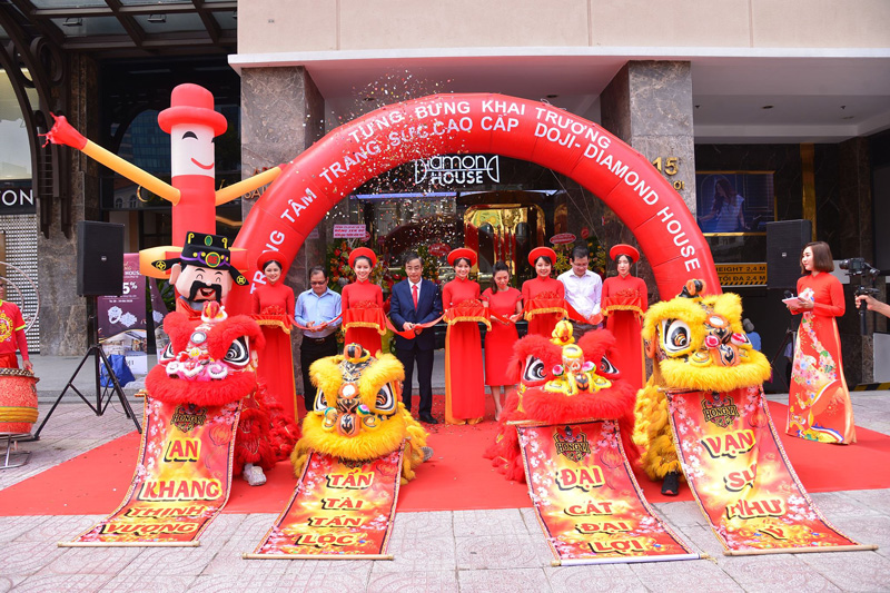 Đúng 9:30 phút đã diễn ra nghi thức cắt băng khánh thành khai trương Trung tâm Trang sức Cao cấp Diamond House. Đây là Trung tâm Trang sức Cao cấp Diamond House đầu tiên của DOJI tại TP HCM và là Trung tâm Trang Sức Cao cấp Diamond House thứ 2 trên cả nước.