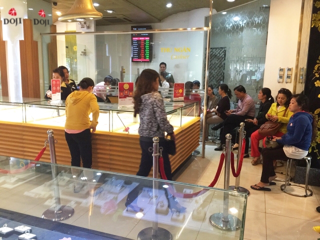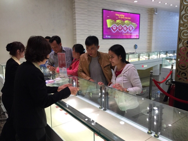 Mua sắm nhộn nhịp là không khí chung trong ngày đầu tiên (27/2 tức mùng 9 Tháng Giêng Âm lịch) tại toàn bộ Hệ thống phân phối của Tập đoàn DOJI trên toàn quốc hiện đang bày bán sản phẩm Kim Dương.