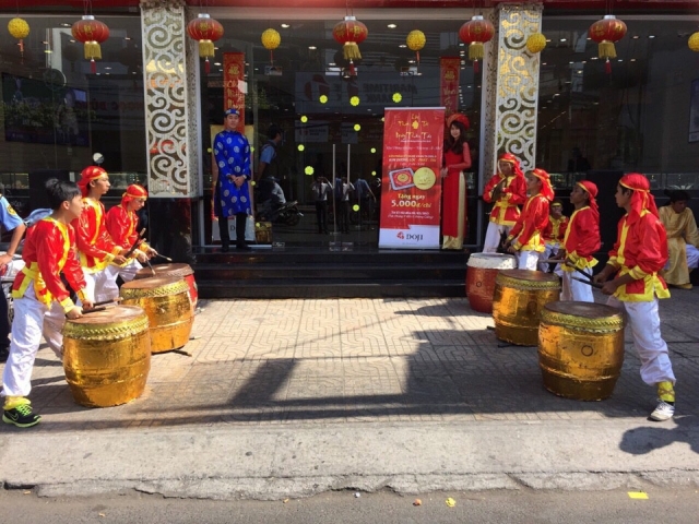 Trung tâm 66 Cách mạng tháng Tám, TP.HCM với chiêng trống tưng bừng, rộn ràng cả một góc phố