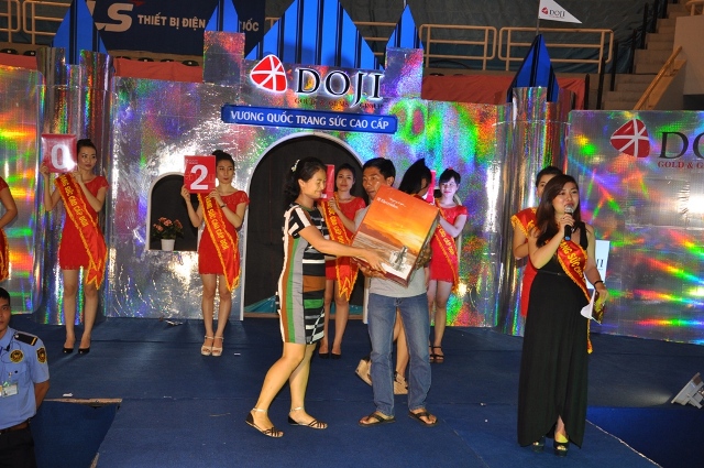 Một hoạt động khác cũng đã lôi kéo không ít sự chú ý và tham gia của người dân vào buổi tối ngày hôm qua, chính là màn trao giải Bốc thăm chương trình Nhẫn cưới. Chương trình này đã được tổ chức đều đặn suốt từ những ngày đầu Hội chợ, diễn ra ngay tại sân khấu chính của Trang sức DOJI.