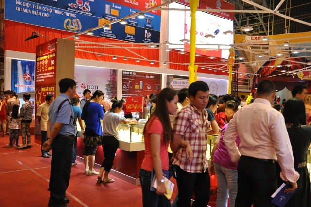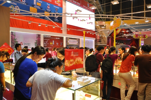 Quang cảnh tham quan mua sắm sôi động, tập trung nhất tại các gian hàng của DOJI.
