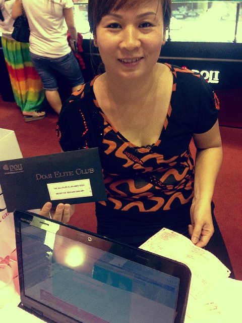 Một khách hàng thân thiết khác của Trang Sức DOJI – Bạn Huỳnh Châu Mỹ – đã tới thăm quan gian hàng DOJI tại Hội chợ, đồng thời rất may mắn khi nhận giải thưởng trị giá 500.000 VNĐ.