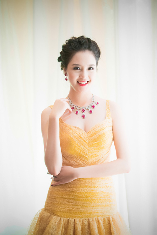 Đến dự đêm trình diễn thời trang được tổ chức vào ngày 25/7 tại khách sạn Melia Hà Nội nhằm kỷ niệm 20 năm thành lập Tập đoàn DOJI , Ngọc Hân sóng đôi cùng nhà thiết kế Hà Duy. Cả hai là bạn thân thiết trong nhiều năm qua. Diện bộ váy vàng rực rỡ, Hoa hậu Việt Nam 2010 tỏa sáng giữa dàn khách mời.