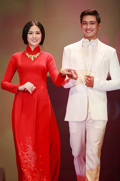Cũng trong event tối qua, Ngọc Hân còn tái xuất sàn catwalk. Cô trình diễn cùng một người mẫu nam.