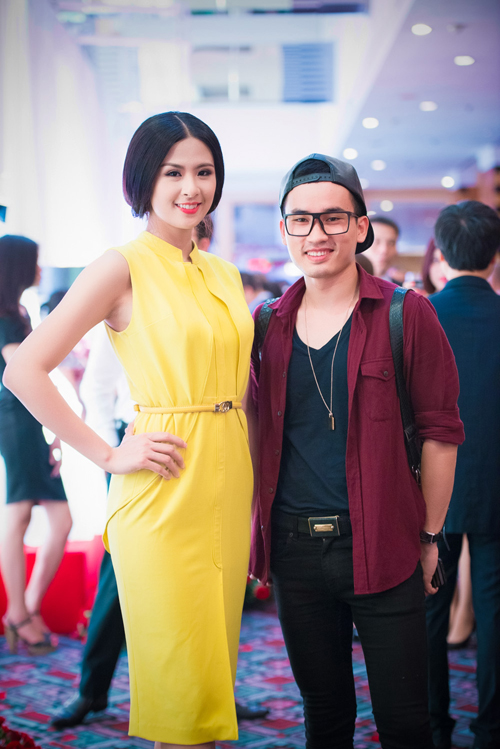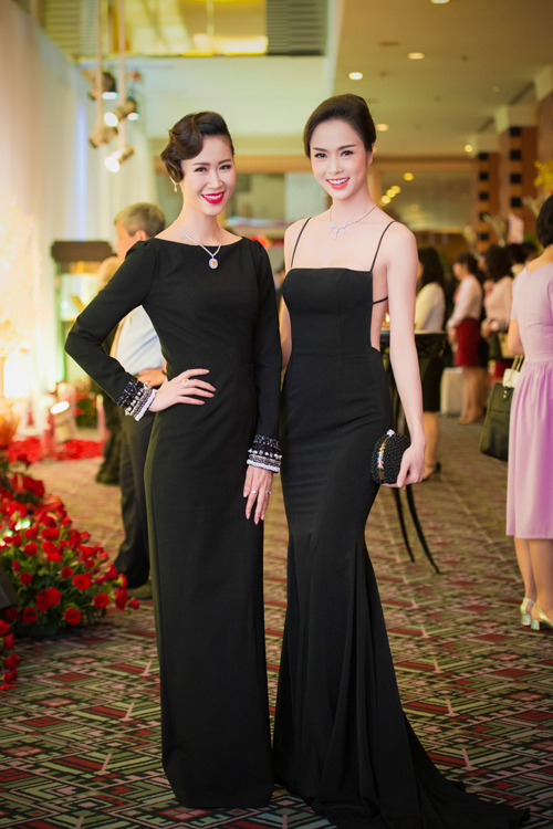 Hoa hậu Thân thiện Dương Thùy Linh và top 5 Hoa hậu Việt Nam 2012 Ngọc Anh không hẹn mà gặp, đều mặc váy đen. Trong khi Dương Thùy Linh trung thành với phong cách kín đáo thì Ngọc Anh lại táo bạo không diện nội y và khoe lưng trần.