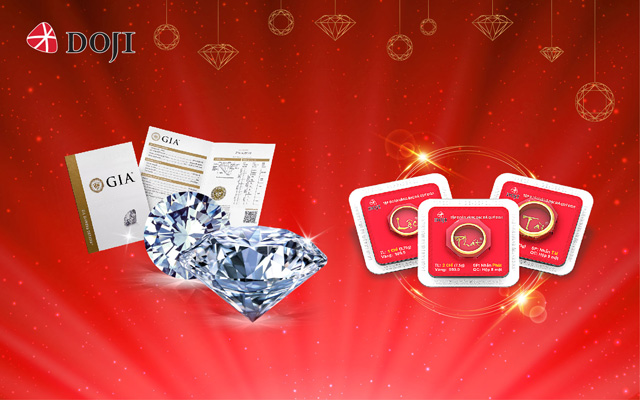 DOJI cũng dành riêng món quà khủng tới những tín đồ kim cương, theo đó, Thương hiệu tặng tới 1 lượng vàng 999.9 khi khách mua kim cương viên trong thời gian diễn ra chương trình ưu đãi.