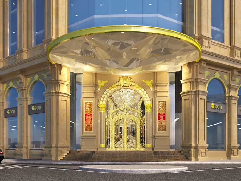 DOJI Tower nổi bật bởi kiến trúc ấn tượng từ ngoại thất, mang phong cách sang trọng và hiện đại khiến bất cứ ai cũng mong muốn được đặt chân vào khám phá. Đặc biệt, hệ thống phào chỉ, hoa văn chi tiết bề ngoài mặt công trình đều được chế tác tỉ mỉ bằng tay bởi những nghệ nhân kim hoàn và gốm sứ bậc thầy, có chất liệu vàng 24K giá trị