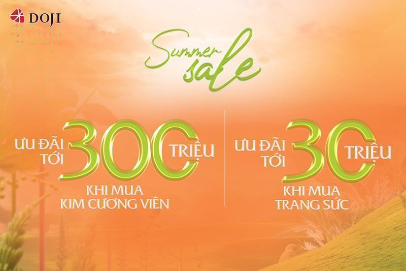 Chào đón mùa hè rực rỡ, điểm tô khí chất thêm rạng ngời, từ ngày 24/06 đến 30/06/2022, Trang sức DOJI gửi tặng khách hàng chương trình nhân đôi ưu đãi: Tặng đến 300 triệu đồng khi mua Kim cương viên và tặng đến 30 triệu đồng khi mua Trang sức, đồng thời được tặng thêm ưu đãi tới 1 triệu đồng.