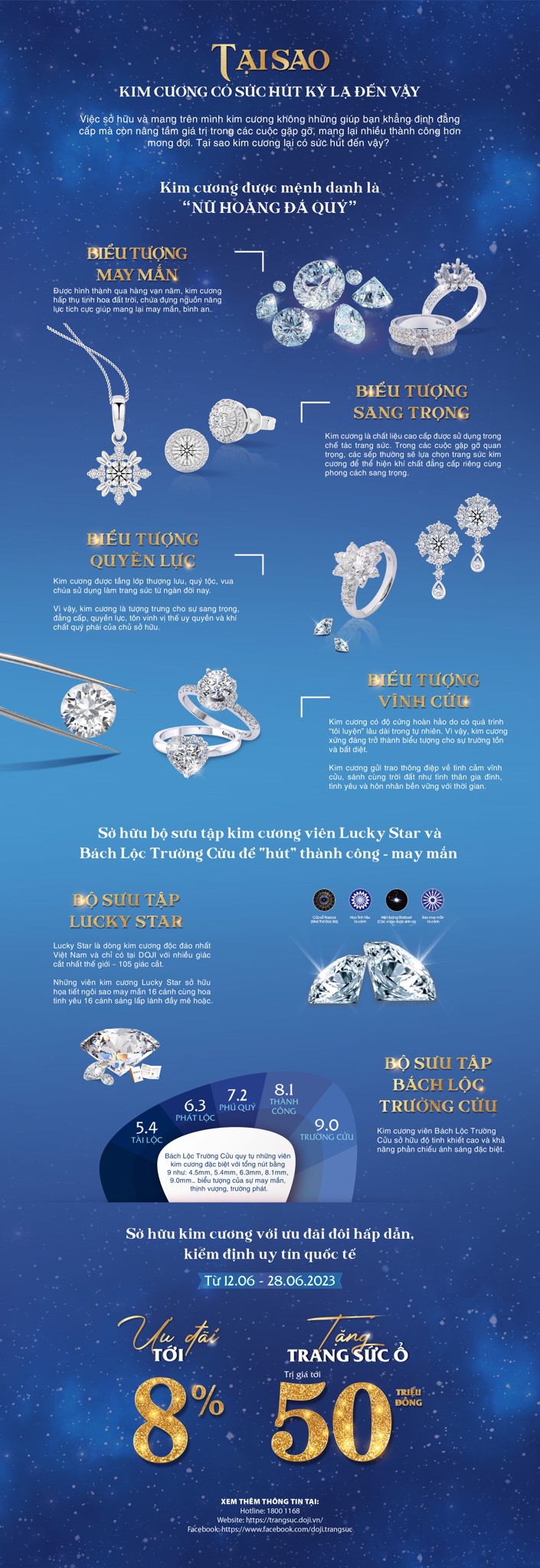 Việc sở hữu và mang trên mình kim cương không những giúp bạn khẳng định đẳng cấp mà còn nâng tầm giá trị trong các cuộc gặp gỡ, mang lại nhiều thành công hơn mong đợi.