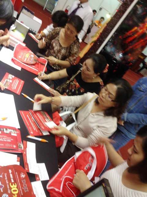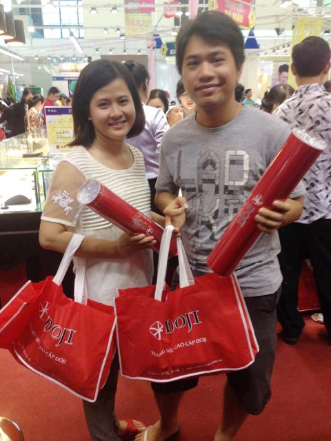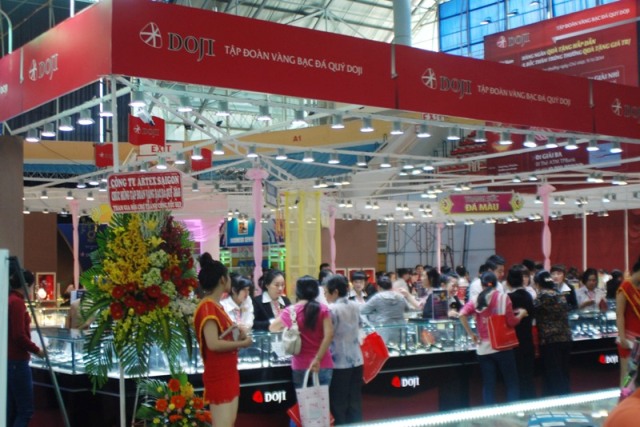 Ngày đầu tiên tham gia Hội chợ Quốc tế Trang sức Việt Nam 2014, hôm nay – 5/11 – với tư cách là nhà tài trợ Vàng duy nhất, Tập đoàn VBĐQ DOJI đã gặt hái được những thành công bước đầu khi liên tục thu hút và gây ấn tượng bởi hàng loạt bất ngờ thú vị tới hàng trăm lượt khách hàng tham quan mua sắm tại Hội chợ.