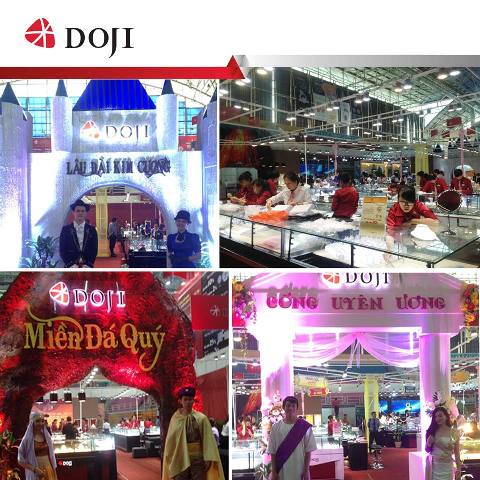 Sáng hôm nay, một Vương quốc DOJI lung linh, hoành tráng đã chính thức trình làng ngập tràn sắc màu của những thương hiệu trang sức uy tín hàng đầu. Ngay từ khi bước chân vào cổng Nhà thi đấu, người dân đã không quá khó để nhận ra “màu cờ sắc áo” của DOJI rực rỡ và nổi bật khắp khu vực Hội chợ. Trang sức DOJI đã thực sự “đốt cháy” bầu không khí tham quan mua sắm tấp nập khi khiến cho khách hàng đi hết từ bất ngờ này đến bất ngờ khác. Không gian lung linh ấn tượng, sản phẩm độc đáo, đội ngũ tư vấn chuyên nghiệp… cùng với hàng chục poster, backdrop, băng rôn, hàng nghìn tờ rơi và quà tặng hấp dẫn dành cho khách tham quan mua sắm… tất cả đều thể hiện được sự quy mô hoành tráng và đầu tư hơn hẳn so với nhiều đối thủ nặng ký khác.