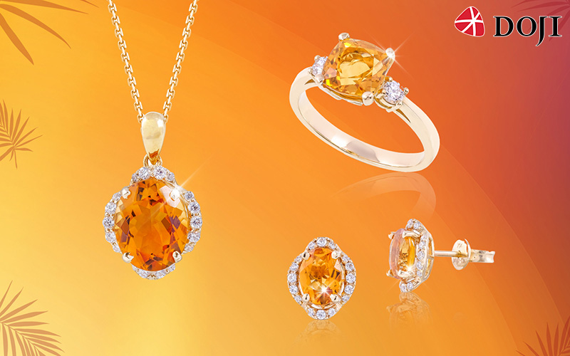 Mùa này DOJI mang tới các tín đồ thời trang bộ sưu tập trang sức đá Citrine độc đáo. Với màu vàng cam ở các sắc độ khác nhau, mỗi món trang sức như mang theo một ngọn lửa bên trong. Các shape (dáng) đá cũng rất đa dạng từ dáng tròn truyền thống, tới dáng giọt lệ, hình cầu hoặc hình oval.