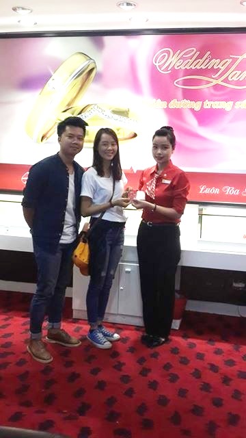 Đôi bạn trẻ Hoàng Vũ – Hải Yến (D5, Quỳnh Mai, HN) trúng 01 chỉ vàng 999.9 ngay sau khi chọn được đôi nhẫn cưới Wedding Land ưng ý với ưu đãi 25% tại Tầng 3, Ruby Plaza, 44 Lê Ngọc Hân, HN