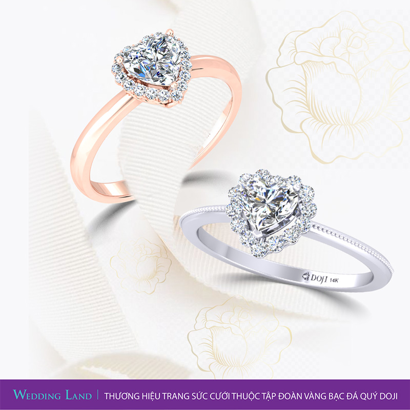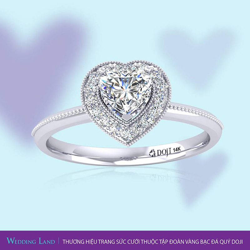 Dành tặng người ấy chiếc nhẫn với “trái tim kim cương” cũng là cách hoàn hảo để bạn thể hiện với người ấy rằng: “Tình yêu chân thực giống như một viên kim cương; quý hiếm, đẹp đẽ và sẽ bền bỉ bất diệt.” Và tình yêu chân thực đó của bạn, cũng giống như viên kim cương, chỉ dành tặng cho người phụ nữ mà mình hết mực yêu thương… Và đó cũng là lời cầu hôn ngọt ngào nhất bạn có thể gửi tới người mình yêu thương, thắp lên “hành trình mật ngọt” của mình với khoảnh khắc luôn sáng mãi của Wedding Land.