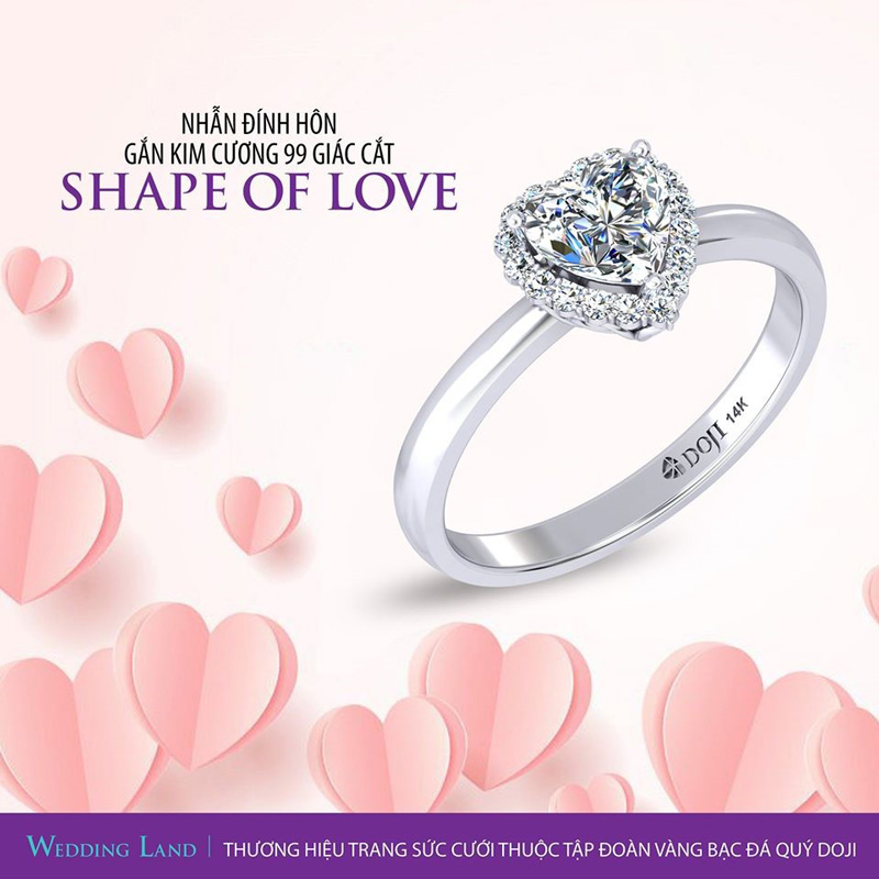 Mới đây, Wedding Land đã giới thiệu BST Shape of Love truyền tải thông điệp tình yêu vĩnh cửu, được chính những nhà thiết kế hàng đầu cùng các nghệ nhân tài hoa trên thế giới sáng tạo nên. Cảm hứng từ hình trái tim - biểu tượng của tình yêu ở mọi thời đại - giúp BST thể hiện lời yêu chân thành, ngọt ngào mà bất cứ cô gái nào cũng không thể chối từ. Lãng mạn, đẳng cấp và hoàn hảo, nhẫn đính hôn Shape of Love sẽ là bí quyết để nàng "Say Yes" và cùng bạn lưu giữ những khoảnh khắc tuyệt vời nhất trong hành trình yêu thương gắn kết.