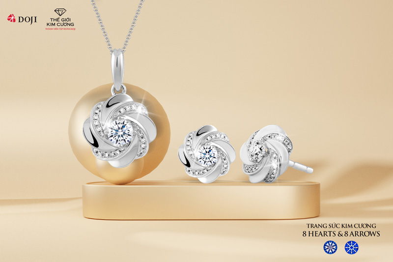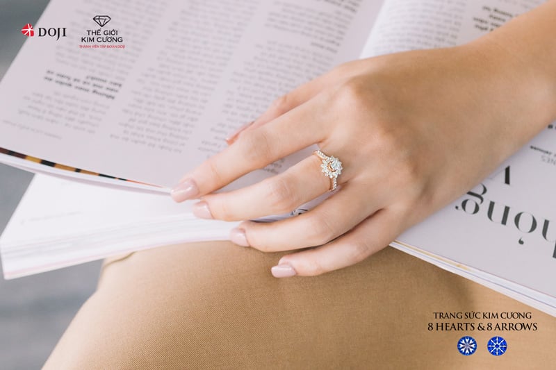 Tại Việt Nam, các sản phẩm kim cương và trang sức gắn kim cương của DOJI luôn được lòng phái đẹp và trở thành sự lựa chọn hàng đầu bởi kiểu dáng, chất lượng và giá cả gắn liền với uy tín gần 3 thập kỷ trên thị trường. Với nhu cầu tự tin tỏa sáng hàng ngày, người phụ nữ hiện đại mong muốn sở hữu món trang sức kim cương tinh tế, thể hiện thần thái đẳng cấp của người đeo. Sự lựa chọn hàng đầu chính là sản phẩm trang sức kim cương 8 Hearts & 8 Arrows của DOJI, bởi thiết kế đa dạng, phù hợp xu hướng hiện đại, giúp nâng tầm phong cách của các cô gái, “cho phụ nữ luôn trọn vẹn”.