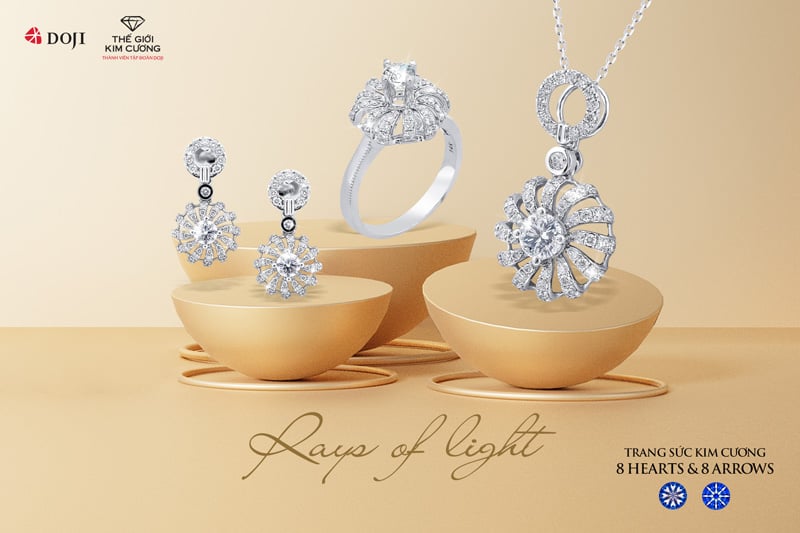 Giờ đây, việc sở hữu trang sức kim cương không còn là mơ ước xa vời của phái đẹp. Chỉ từ 20 triệu đồng, các cô gái có thể sở hữu ngay một món trang sức kim cương 8 Hearts & 8 Arrows trong các bộ sưu tập đình đám như “The Wonder Things”, "Rays of Light", "Queen of Hearts", “Blooming Rose” tại hệ thống gần 200 cửa hàng của DOJI và Thế Giới Kim Cương trên toàn quốc.