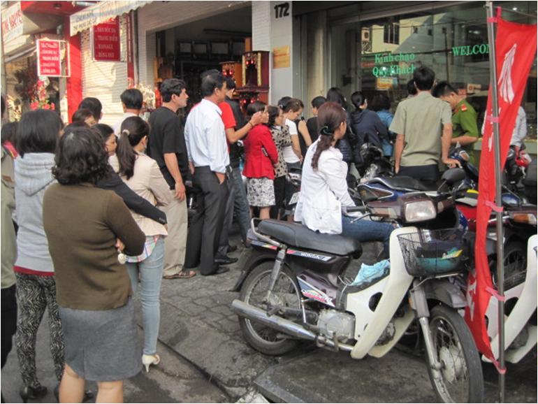 Lực lượng An ninh hỗ trợ khách hàng an tâm xếp hàng trong trật tự chờ mua sản phẩm Kim Mã