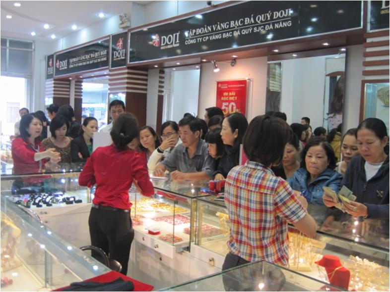 Tại 37B Trần Nhân Tông - DOJI là đơn vị có lượng khách hàng đông đúc nhất con phố Vàng