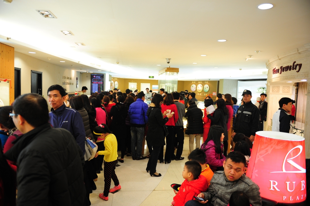 Tại Tầng 1-Ruby Plaza lượng khách hàng là một biển người, chật kín khu vực Tầng 1 của Trung tâm Thương mại