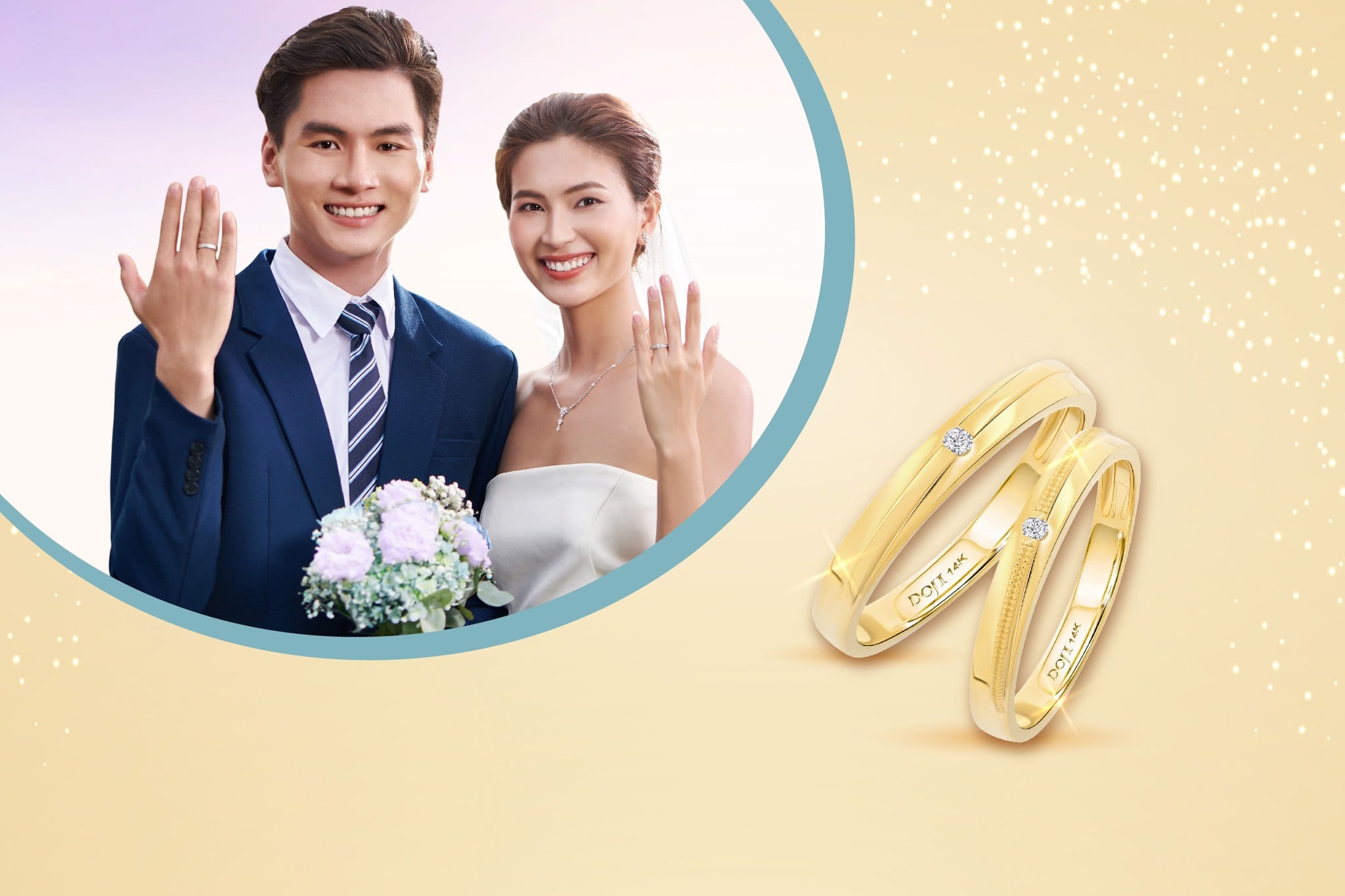 DOJI giới thiệu 600 cặp nhẫn cưới gắn kim cương chỉ có giá 6 triệu đồng.