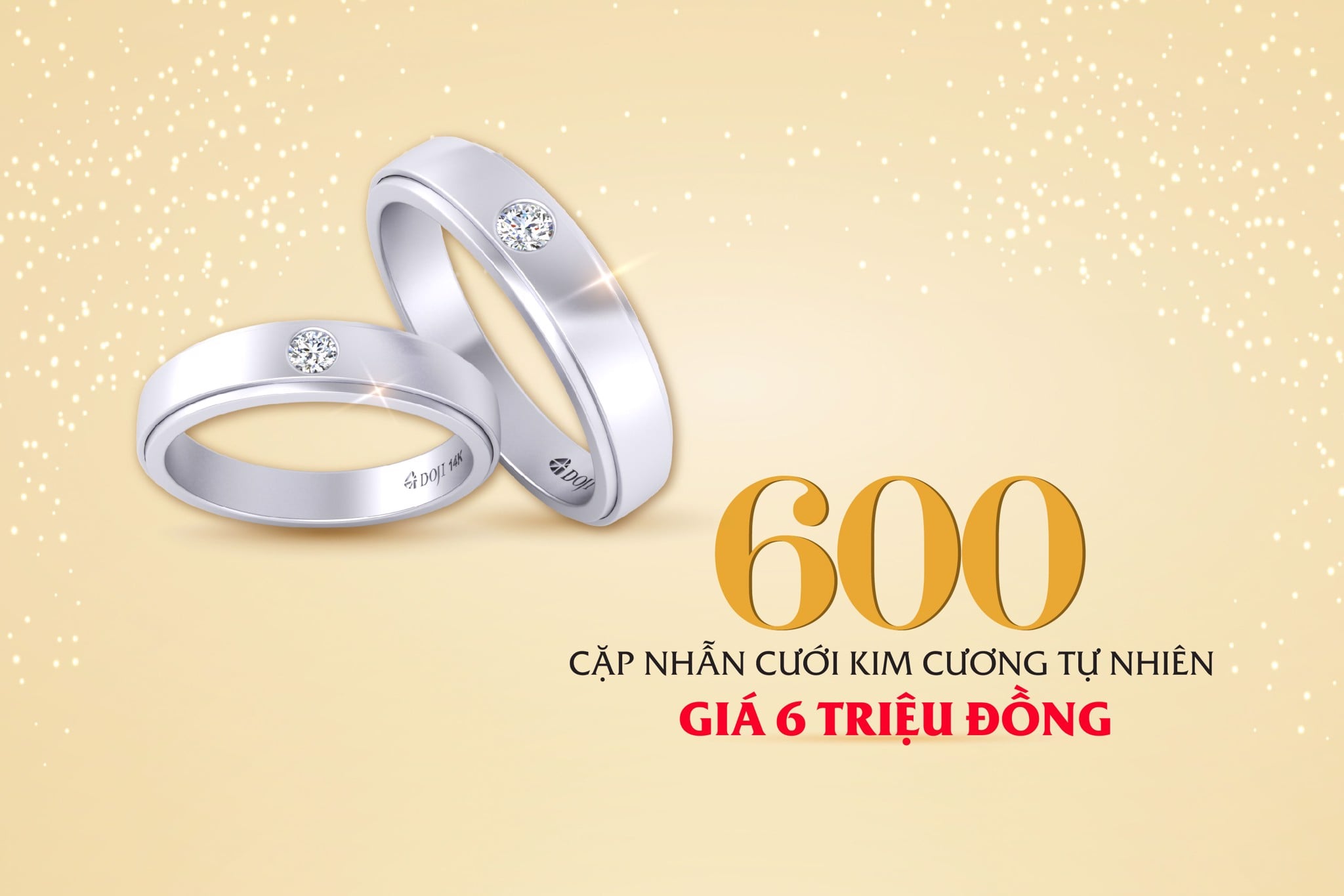 Thấu hiểu và chúc phúc cho tình yêu đôi lứa mãi được bền lâu, không phai nhòa, DOJI giới thiệu tới khách hàng 600 cặp nhẫn cưới kim cương tự nhiên chỉ với giá 6 triệu đồng, giúp các cặp đôi dễ dàng sở hữu “tín vật tình yêu” trường cửu trong ngày trọng đại của cuộc đời.