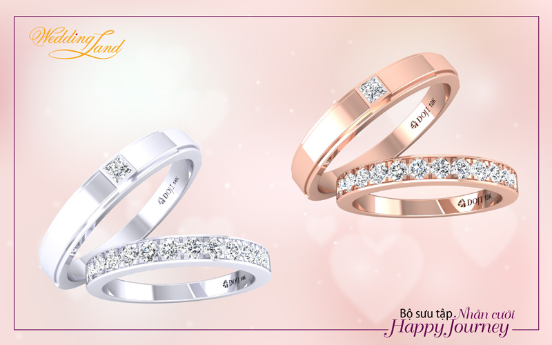 Bộ sưu tập Nhẫn cưới Happy Journey được DOJI giới thiệu với các mẫu thiết kế mới nhất của mùa cưới 2018 – 2019. Điểm nhấn nổi bật của BST là nhẫn cưới đeo kết hợp cùng nhẫn đính hôn, bên cạnh việc thể hiện xu hướng thời trang thế giới, còn được thể hiện như một lời cam kết của cặp đôi cũng nhau tạo nên một hành trình hạnh phúc như câu nói “Hạnh phúc là hành trình chứ không phải đích đến”.
