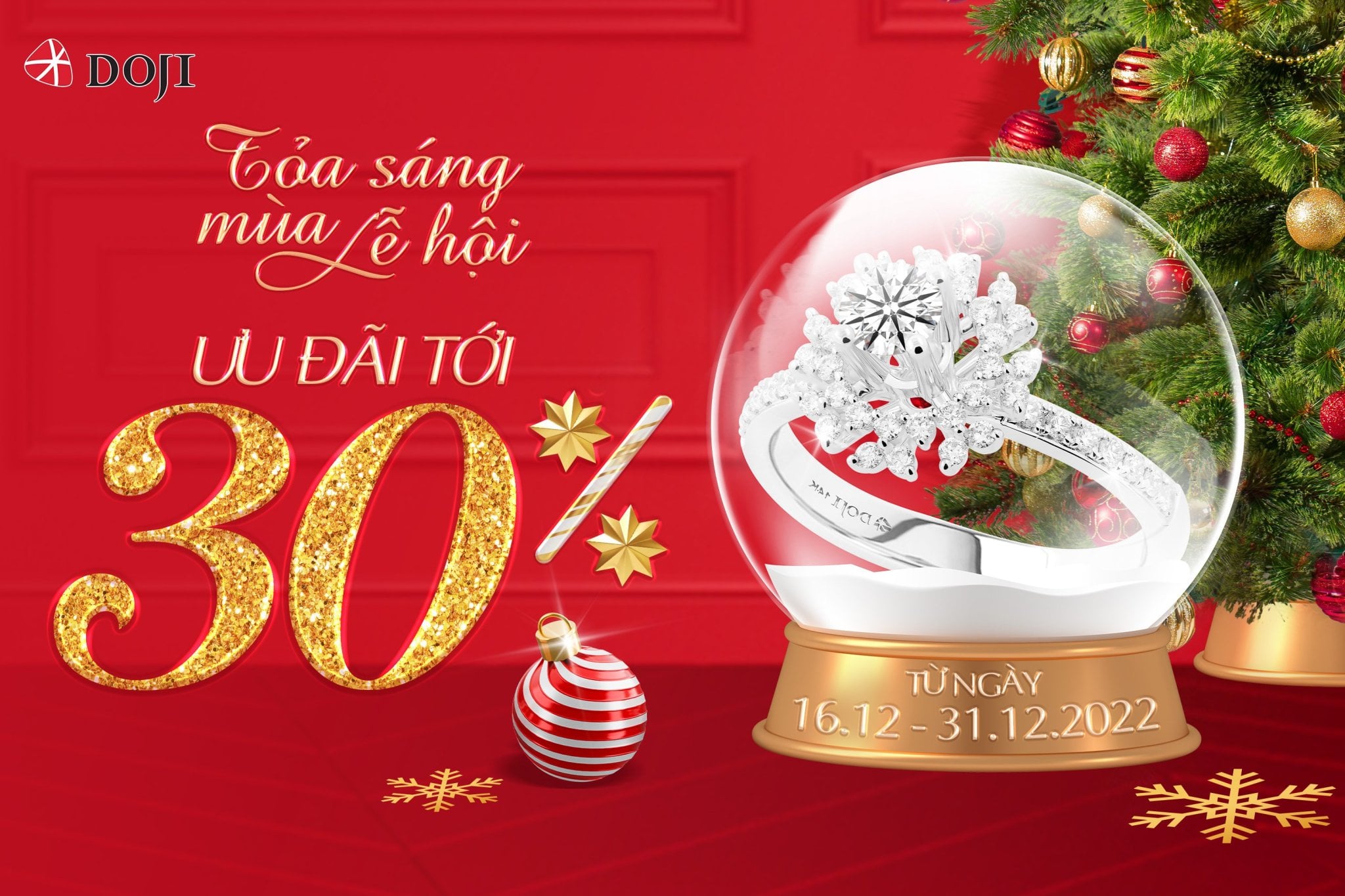 Mùa lễ hội 2022 này, Trang sức DOJI ưu đãi lên tới 30% Trang sức kim cương từ ngày 16/12 – 31/12/2022, sẵn sàng đồng hành cùng phái đẹp thêm tự tin để “bung toả phong cách, tươi sáng dung nhan”. Nếu đang âm thầm yêu thích trang sức kim cương, bạn hãy nhân cơ hội này để sở hữu ngay cho bản thân một thiết kế ấn tượng để thật kiêu hãnh và xinh đẹp, tận hưởng khoảnh khắc tuyệt vời trong những bữa tiệc cuối năm!