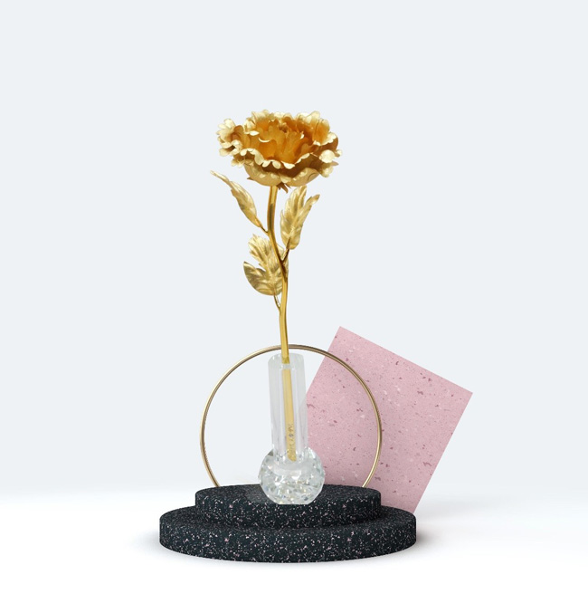 Hoa hồng phủ vàng được rất nhiều người ưa chuộng bởi vẻ đẹp đầy quyến rũ, bình hoa không chỉ có tác dụng trang trí, tô điểm cho không gian sống mà còn mang đến cho gia chủ nhiều ý nghĩa phong thủy tốt đẹp.