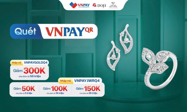 Từ nay đến hết ngày 31/12/2025, khách hàng khi mua sắm tại hệ thống Trung tâm trang sức DOJI và cửa hàng Thế Giới Kim Cương trên toàn quốc sẽ được hưởng ưu đãi trực tiếp khi thanh toán bằng VNPAY QR.
