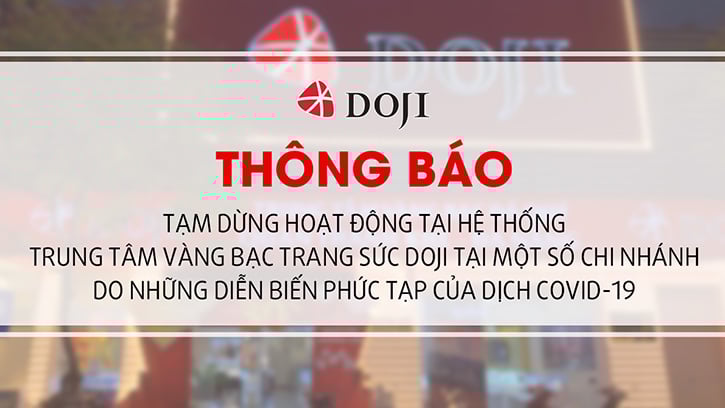 Tạm dừng hoạt động tại hệ thống Trung tâm vàng bạc trang sức DOJI tại một số chi nhánh do những diễn biến phức tạp của dịch Covid-19