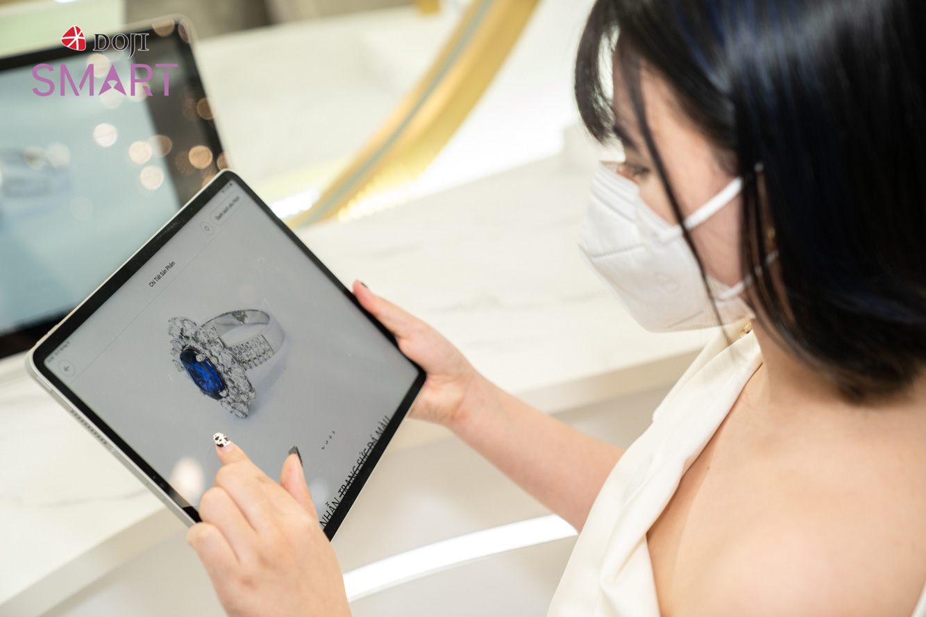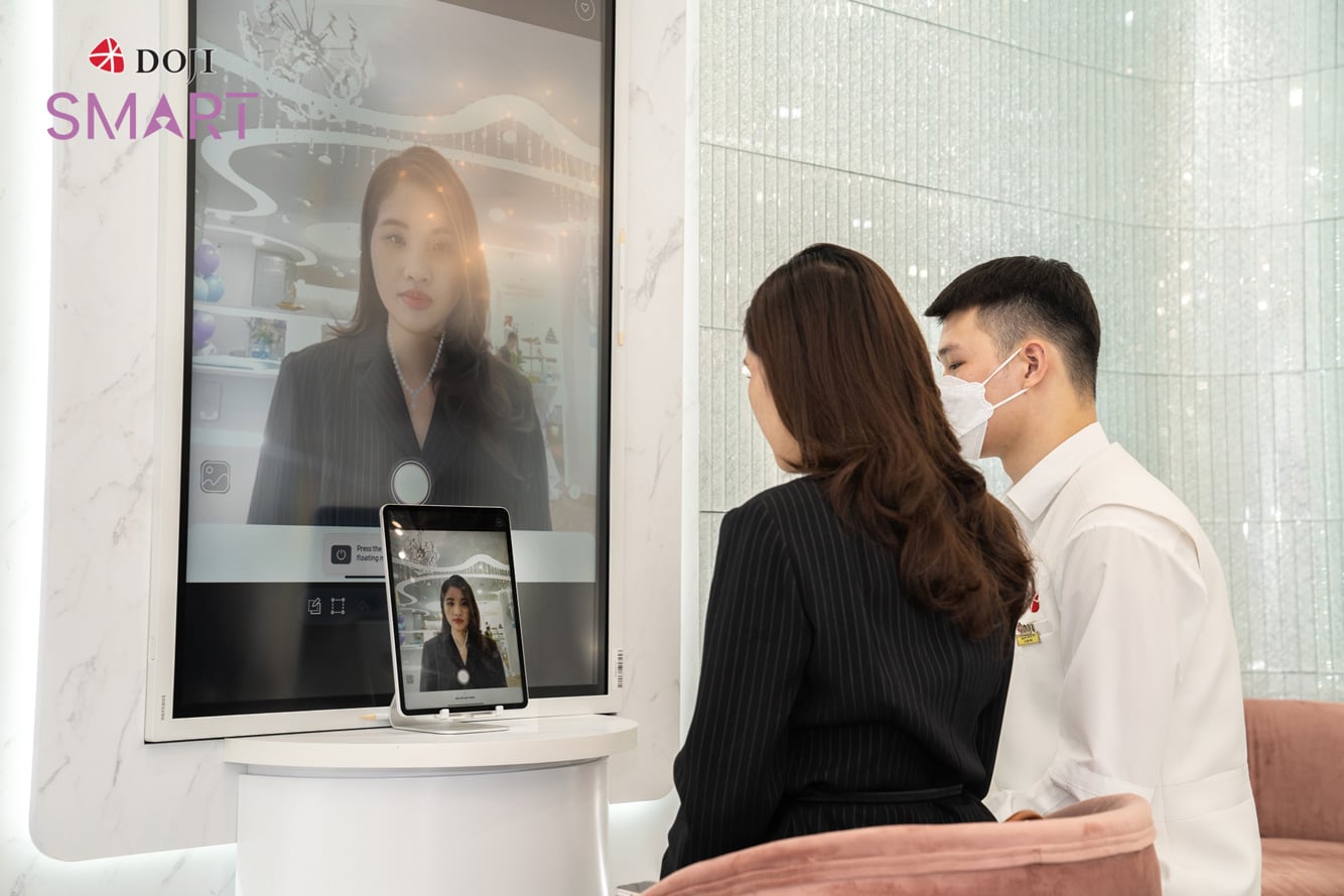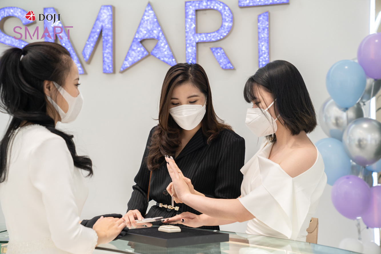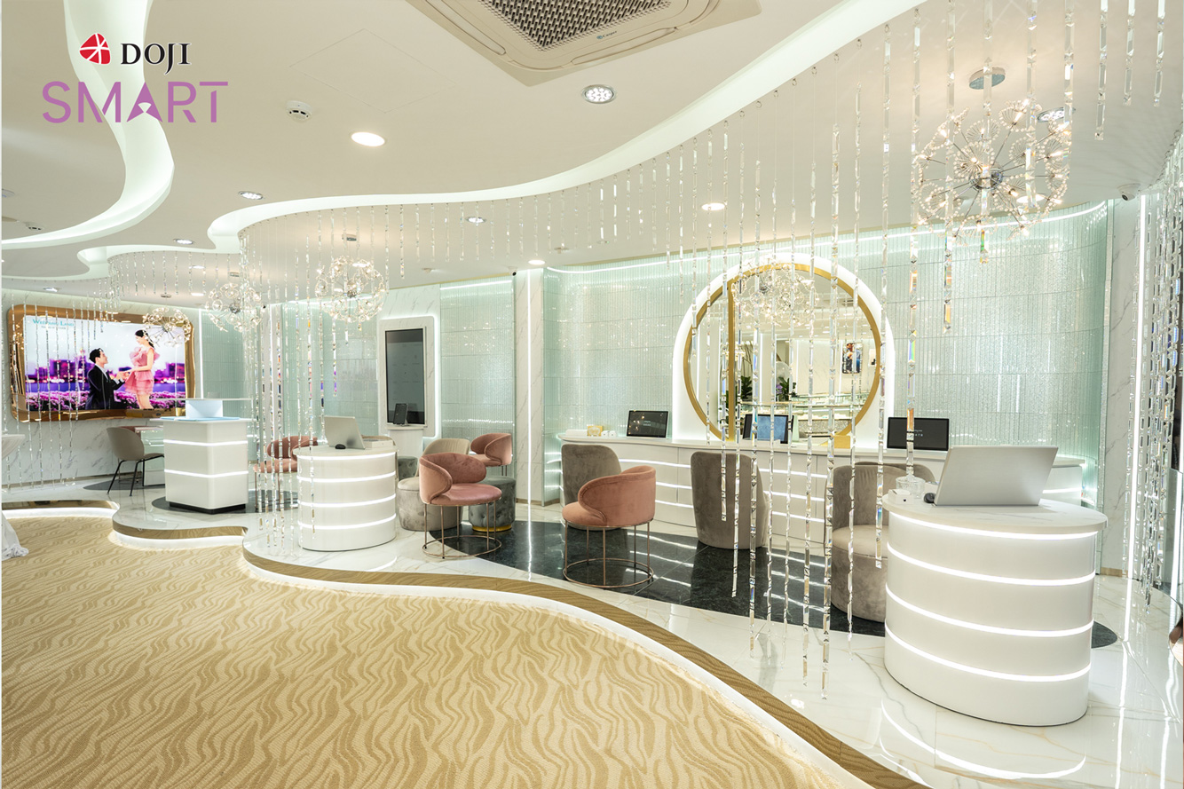 DOJI Smart được xây dựng theo phong cách hiện đại, khác biệt so với các boutique truyền thống với không gian sang trọng, cách bố trí thông minh, tương tác mua sắm mới lạ.