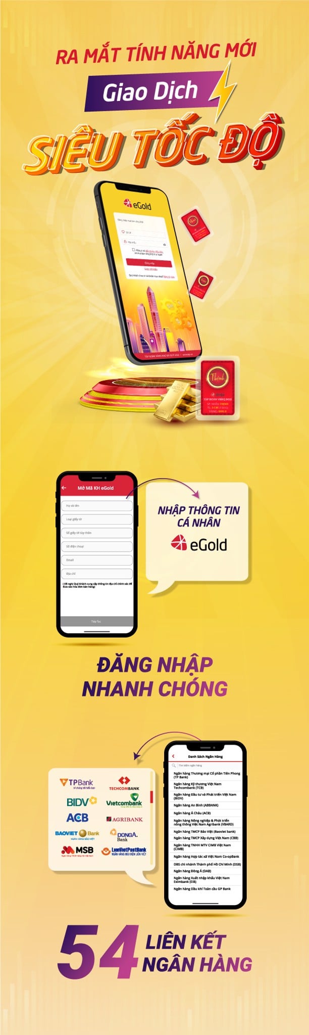 eGold là một dịch vụ tiện ích mới cho khách hàng khi mua bán vàng vật chất, ứng dụng công nghệ hiện đại được phát triển bởi TPBank – Ngân hàng số hàng đầu Việt Nam, nhằm rút ngắn thời gian và quy trình so với giao dịch truyền thống. Các nhà đầu tư có thể giao dịch, mua bán vàng bất cứ đâu, chỉ bằng máy tính, máy tính bảng hoặc điện thoại thông minh. Tất cả mọi giao dịch qua hình thức eGold đều là giao dịch thực, với tiền thực và vàng thực.