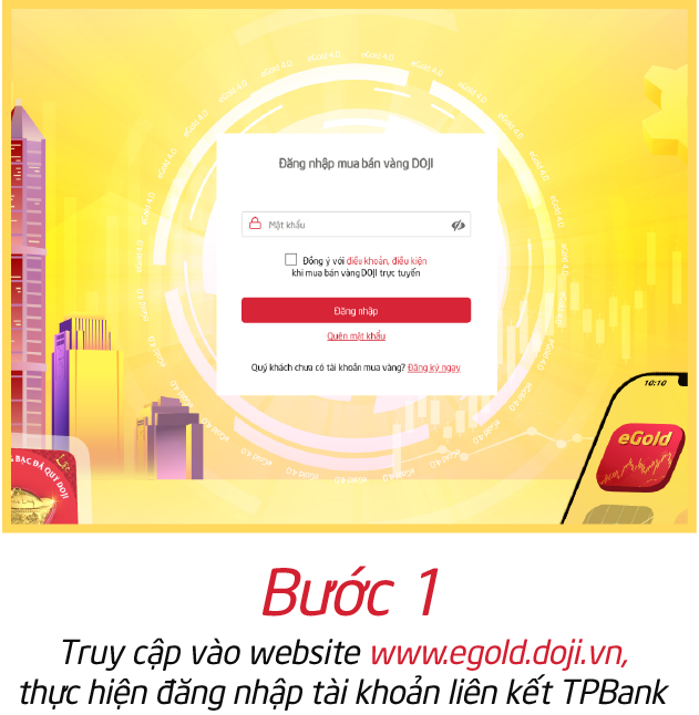 Chỉ với các bước đơn giản, các nhà đầu tư có thể giao dịch thuận tiện, an toàn và tăng cơ hội đầu tư, sinh lời qua hình thức mua bán vàng vật chất trực tuyến eGold của DOJI.